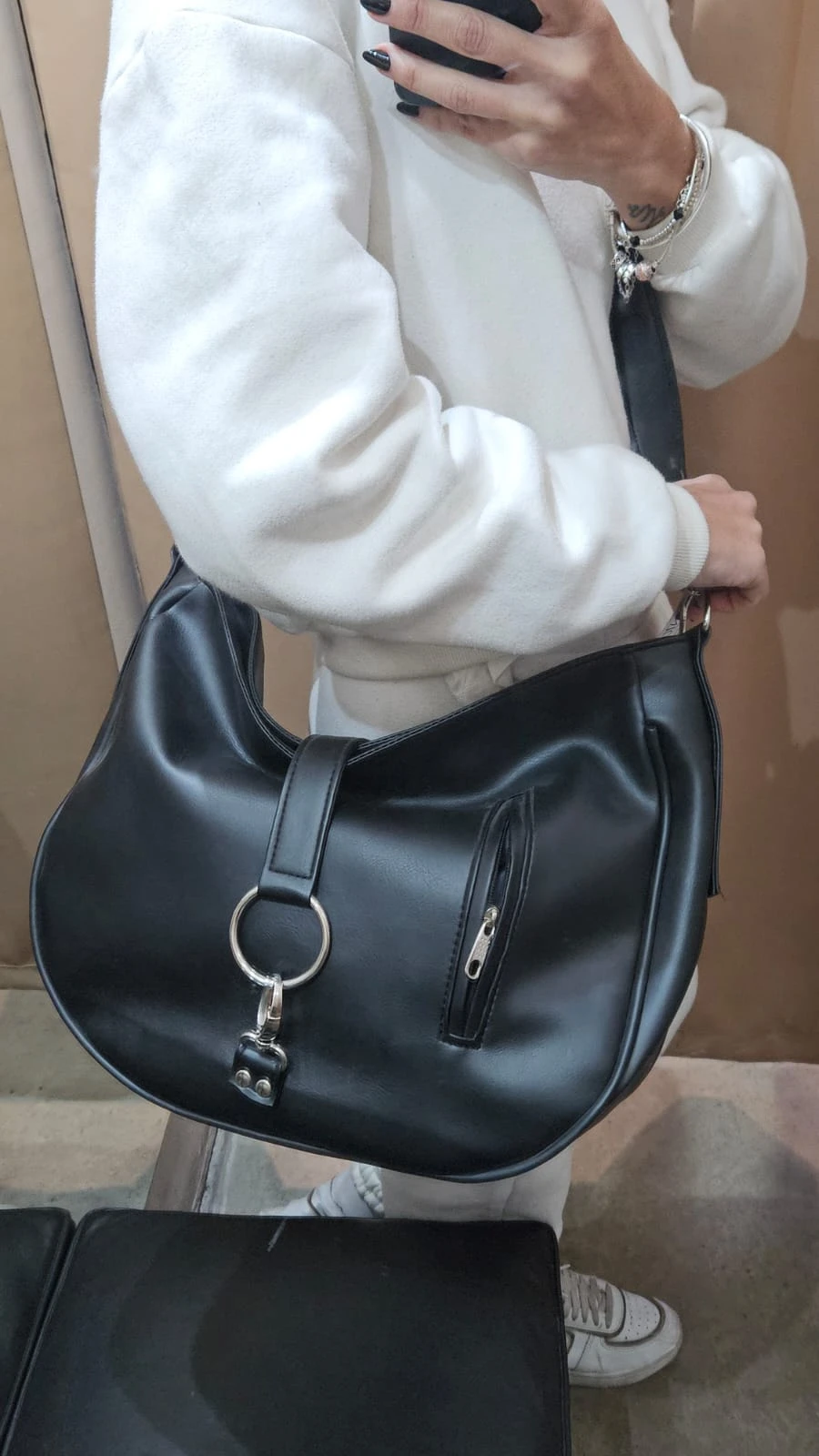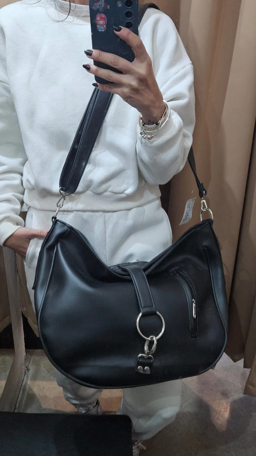 Bandolera con correra larga regulable. Bolsillos delantero y trasero con cierre. Gran capacidad incluso carpeta A4.