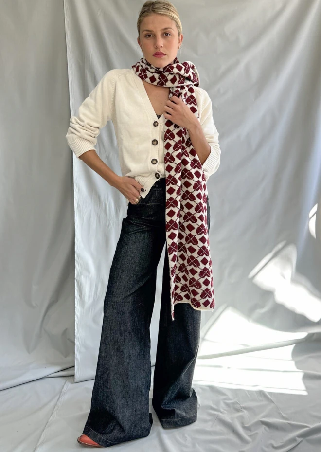 Bufanda estampada de lana jackard, excelente calidad.