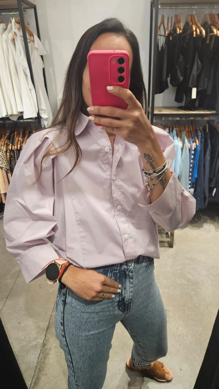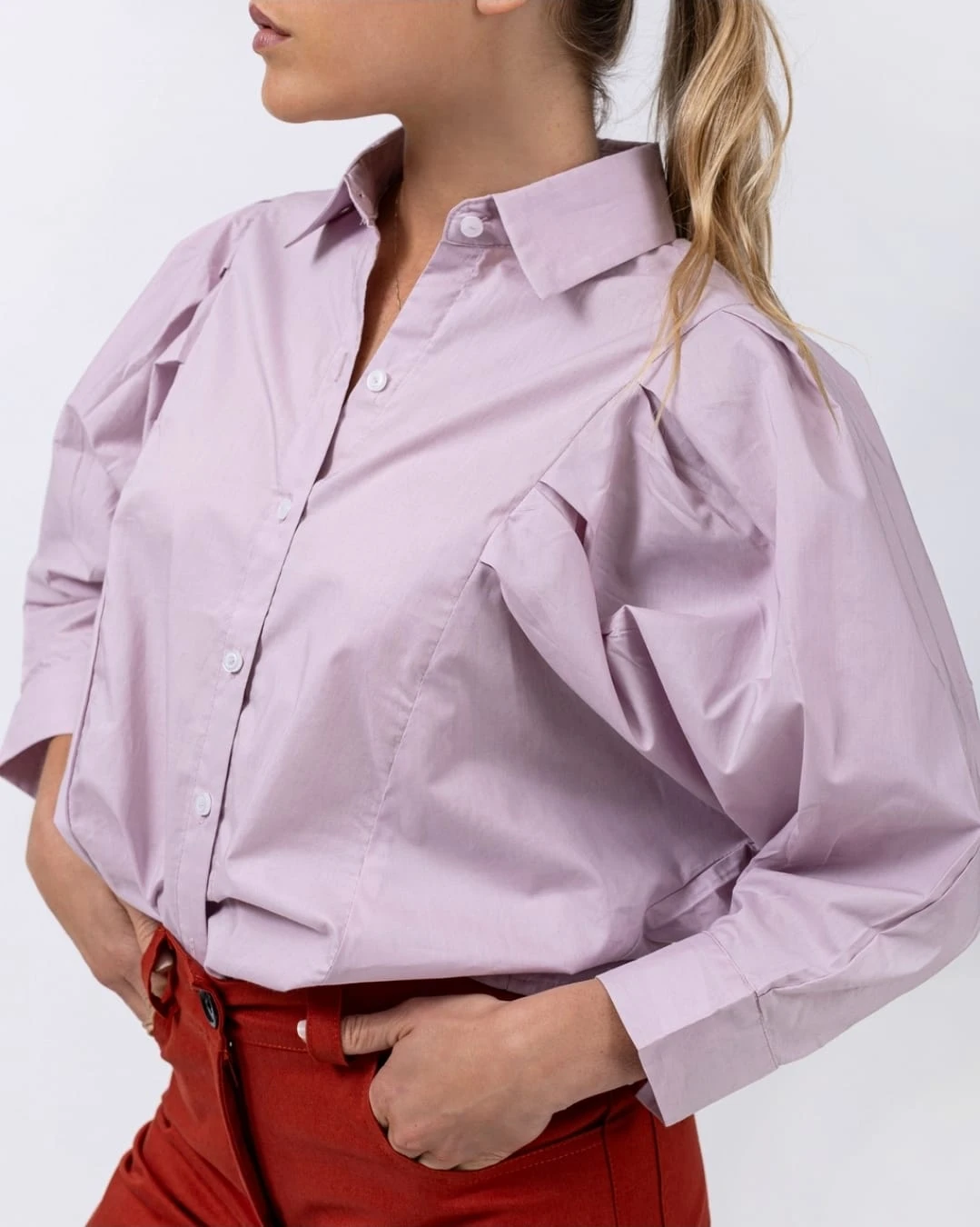 Camisa en algodon con mangas abullonadas que aportan movimiento y funcionaledad. Color: Malta.