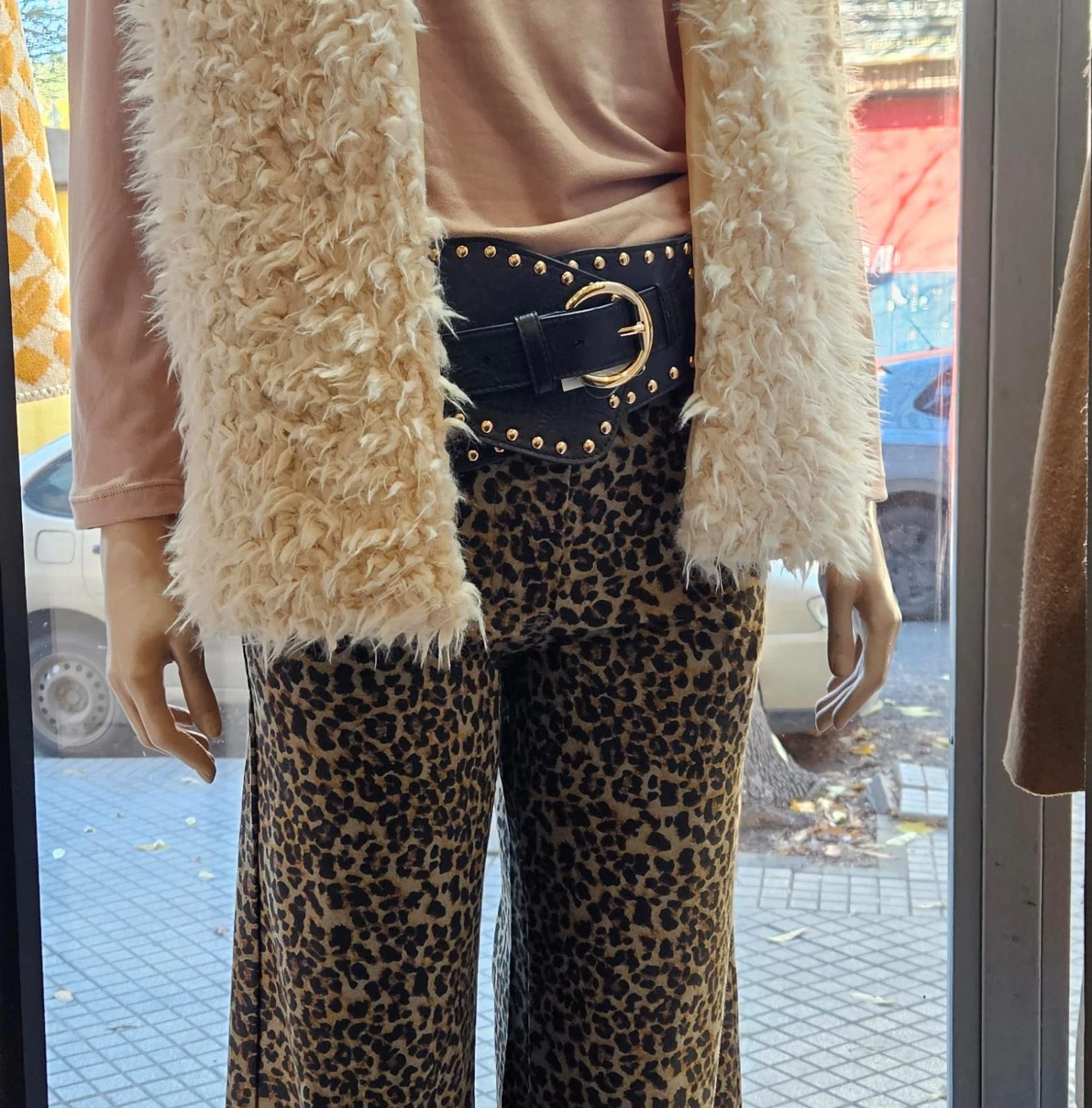Faja negra con tachas y arandelas doradas