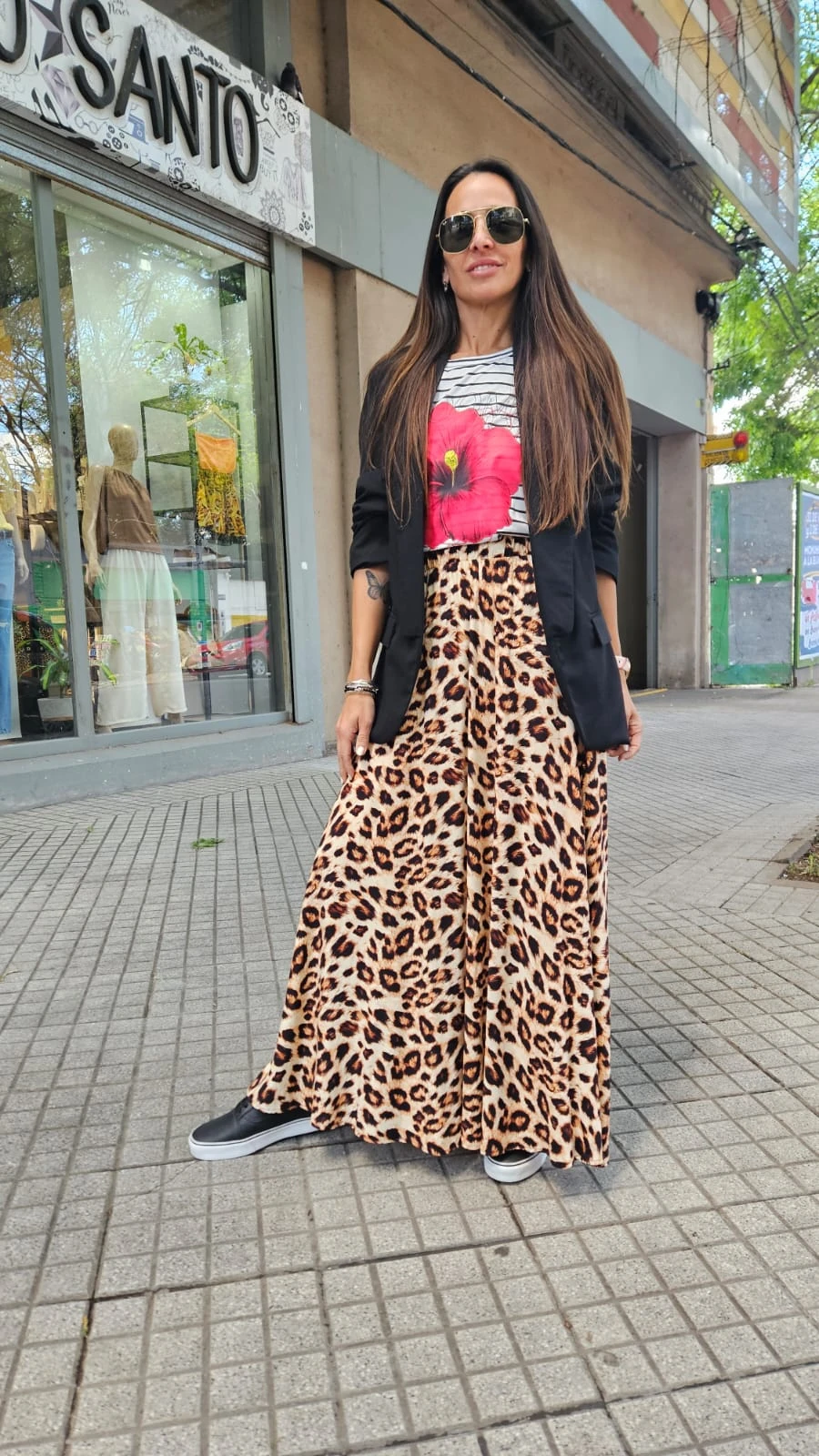 Maxifalda print de corte evase y cintura con elastico, ideal para combinar con basicos, con mucho vuelo y caida.