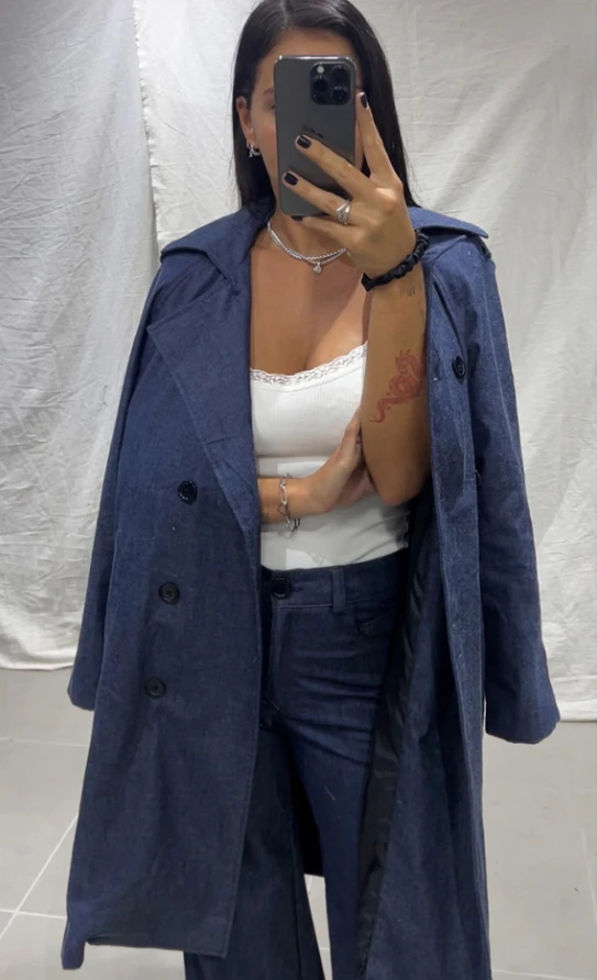 Trench clasico impermeable. Posee botones veteados en delantero y faja en cintura. Interior forreria impermeable.